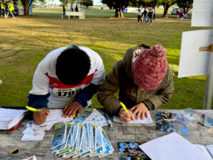 At the Plouharnel site, between races, the pupils were able to stop by our stand to discover, learn and get involved. The aim? To show them that protecting nature can be fun, collaborative and practical.